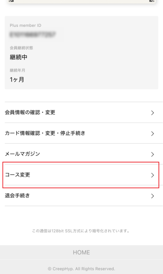 ログイン後、マイページ内の「コース変更」にお進みください。