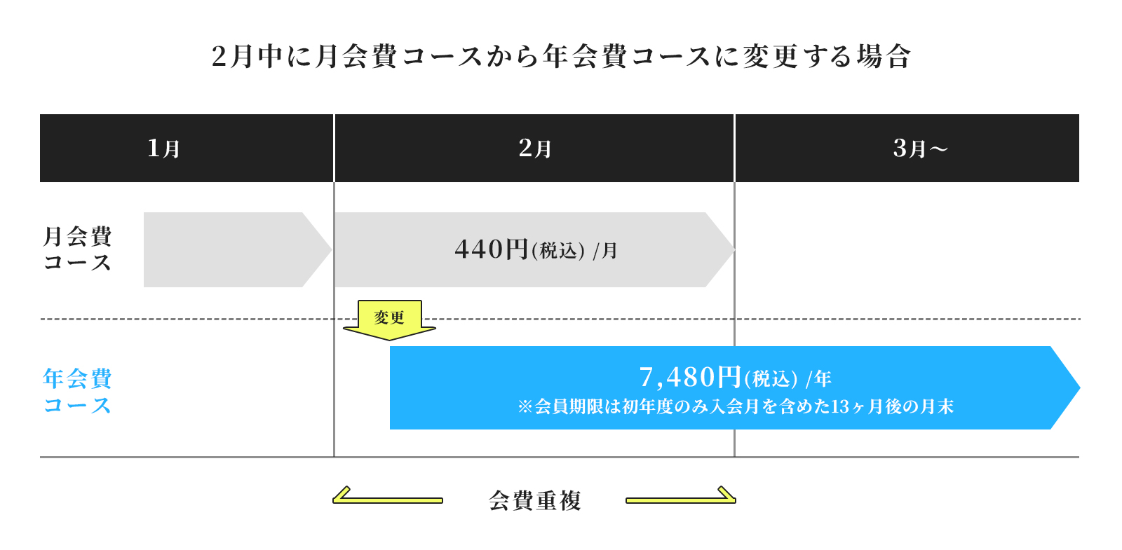 同月内に月会費コースから年会費コースに変更した場合