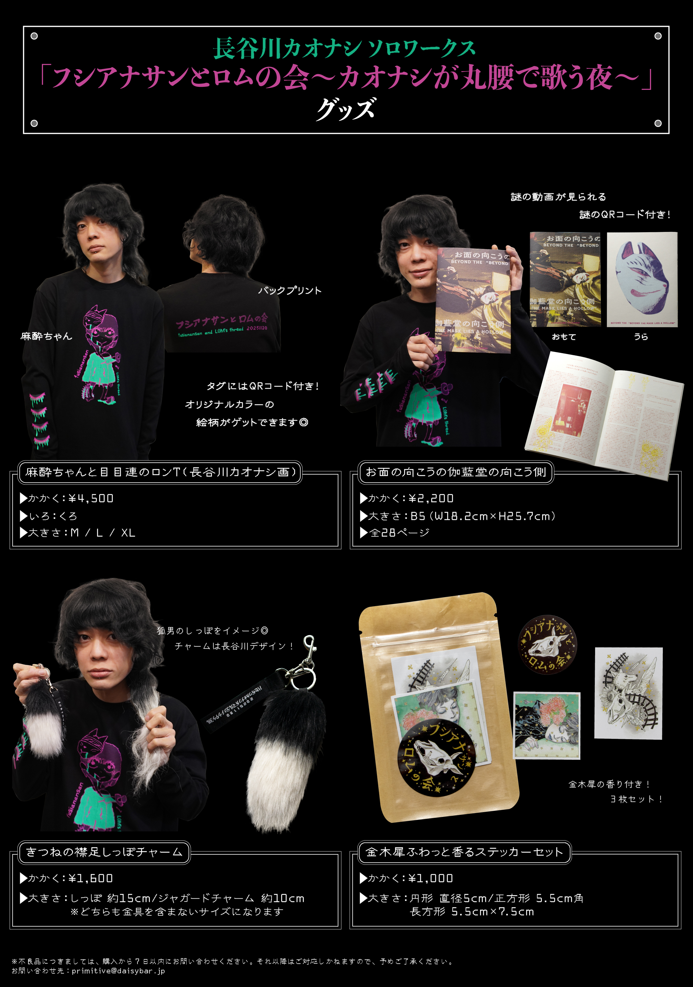 12/4(木)19:00〜「フシアナサンとロムの会〜カオナシが丸腰で歌う夜〜」グッズをオフィシャルオンラインショップで販売開始します!